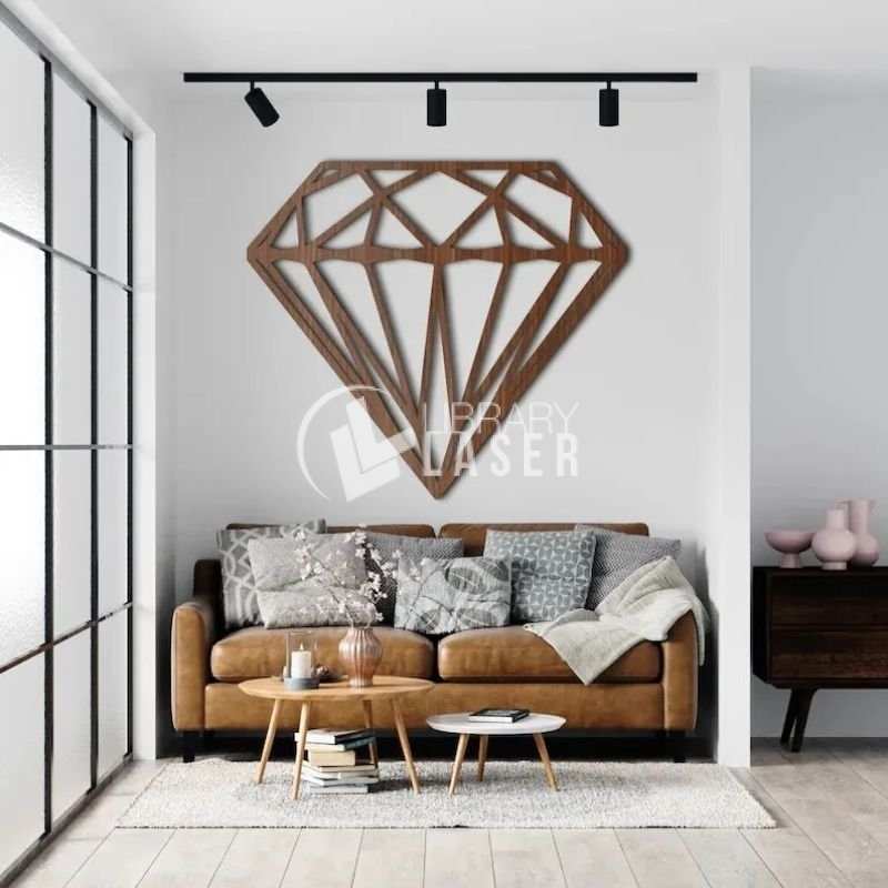 Laser cutting file of wooden geometric diamond wall decor, perfect for wood or acrylic projects.