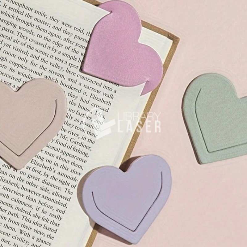 Laser cutting file of heart shaped leather bookmark, perfect for wood or acrylic projects.