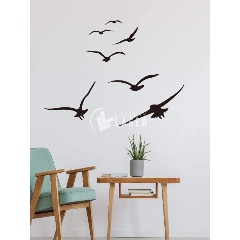 Archivo para corte láser de un adhesivo de pared estampado de gaviota, ideal para proyectos en madera o acrílico.