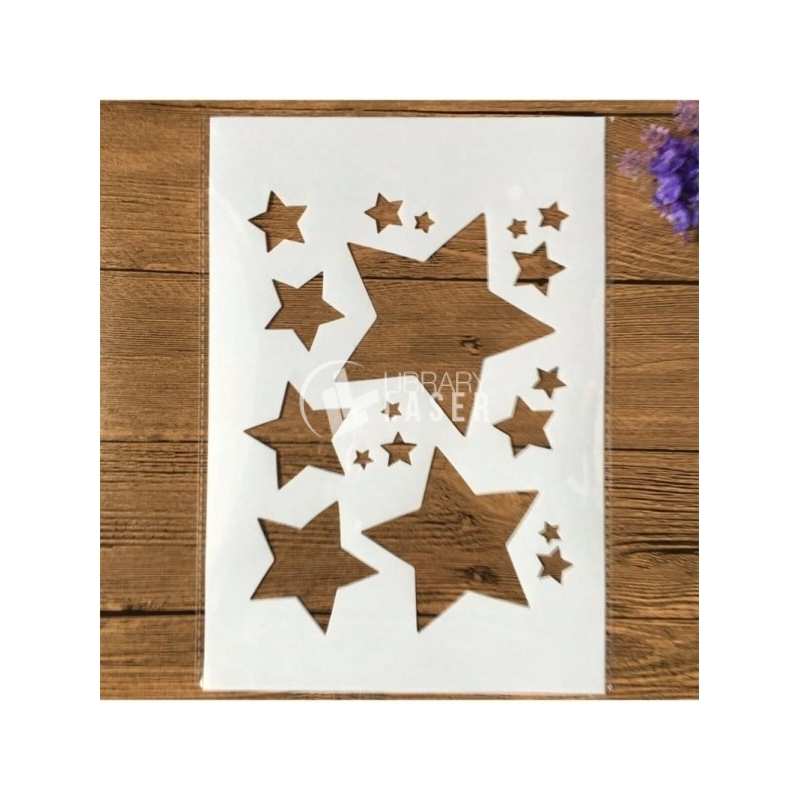 Archivo para corte láser de plantillas de estarcido de estrellas, ideal para proyectos en madera o acrílico.